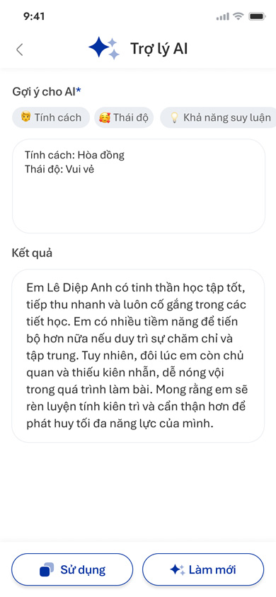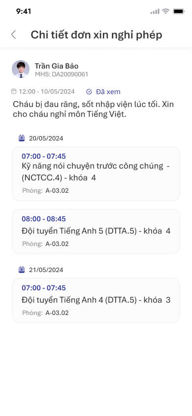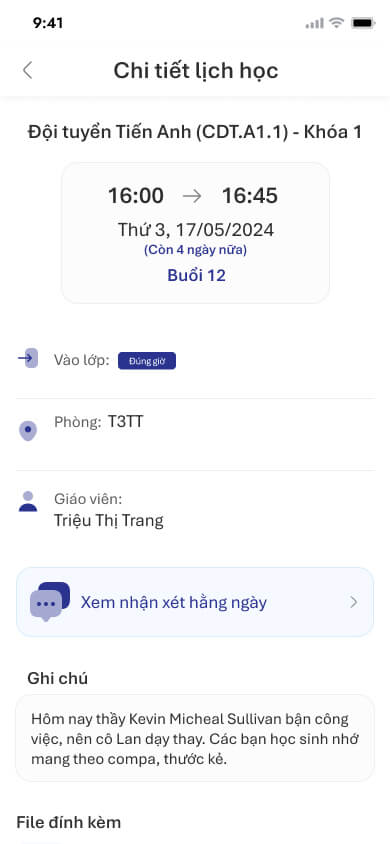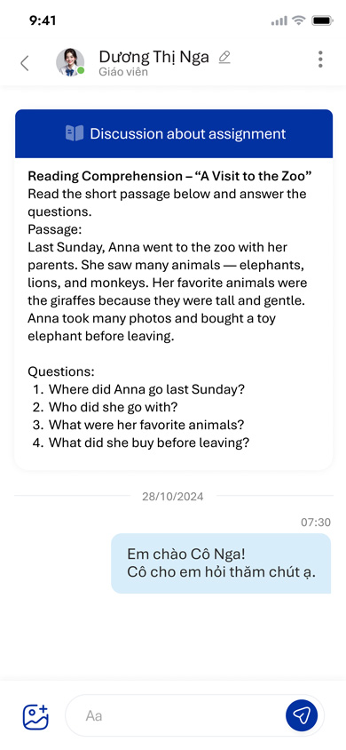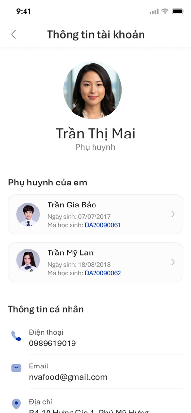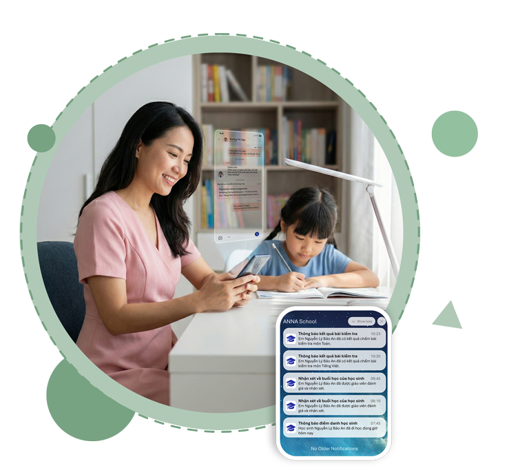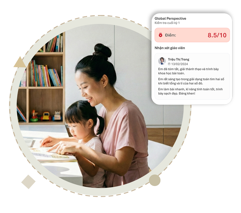 Phụ huynh theo dõi quá trình học, nhận thông báo và trao đổi trực tiếp với giáo viên, từ đó có thể kịp thời hỗ trợ con trong học tập và sinh hoạt.