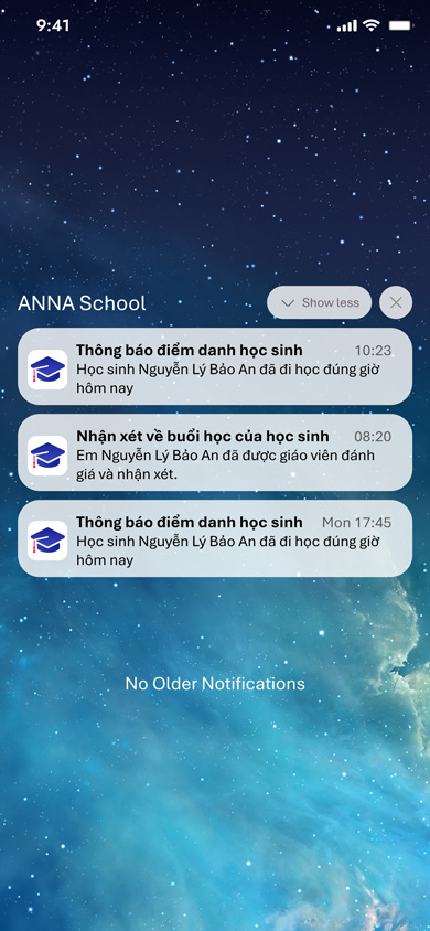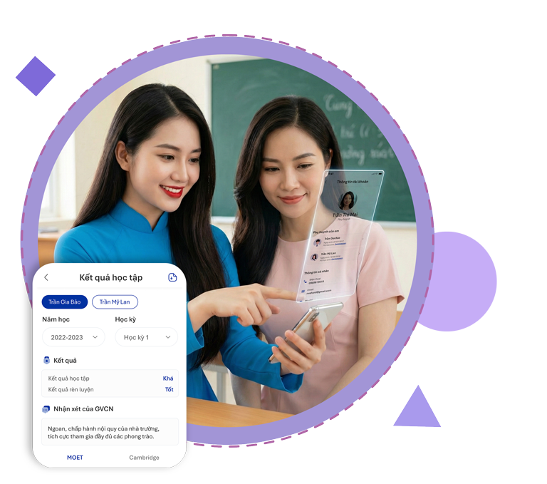 Ứng dụng giúp truyền tải thông tin nhanh chóng và chính xác về: điểm số, thông báo, nhận xét, lịch học… đảm bảo phụ huynh luôn nắm bắt tình hình của con mọi lúc, mọi nơi.