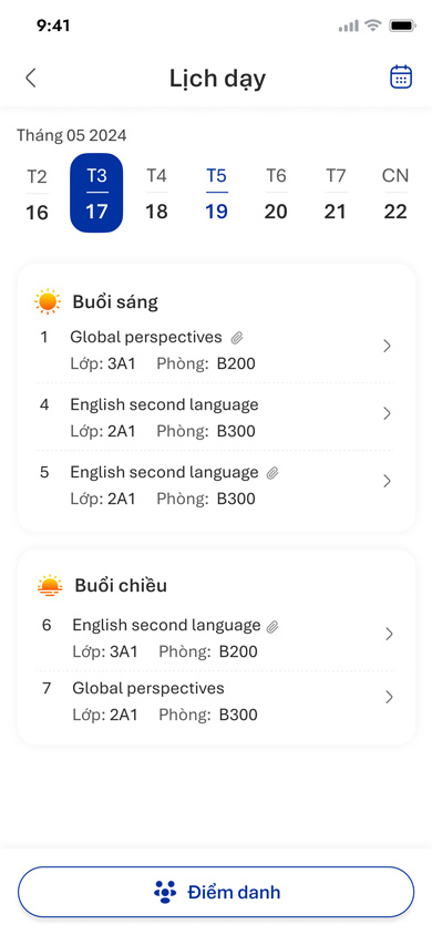 Giáo viên quản lý lớp học dễ dàng: nhập điểm, nhận xét, điểm danh, giao bài tập, gửi thông báo… Tất cả trong một hệ thống thống nhất và tự động hóa.