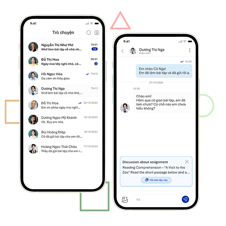 - Học sinh có thể chat trực tiếp với giáo viên về bài tập được giao.